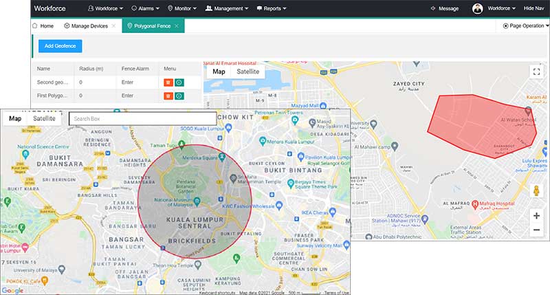 Multiple geofence can be applied to the community tracking targets. It support both circle and polygon shape geofences. When the geofence rules are violated, the device will trigger alarm, so the community supervisors will get notification instantly. Geofence is also able to attached to WIFI or bluetooth beacon. it will trigger the geofence alarm when the tracking target is out of the signal range.